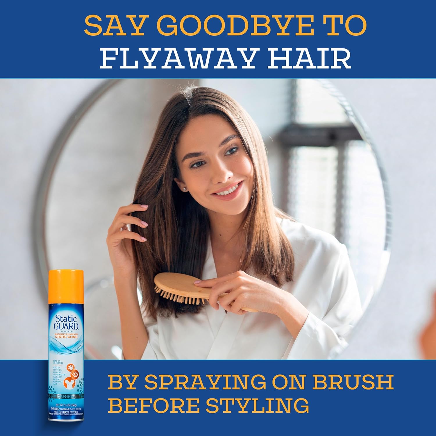 Static Guard Static Cling Spray (5.5 oz) effectively neutralizes static electricity on fabrics, pet hair, and various materials. By balancing electrical charges and attracting moisture from the air, it prevents static cling and shocks. Ideal for laundry and personal grooming, simply spray on combs or brushes to tame flyaways. As America’s leading anti-static spray, it provides long-lasting protection throughout the day, helping you maintain neat, static-free clothes and hair with ease.